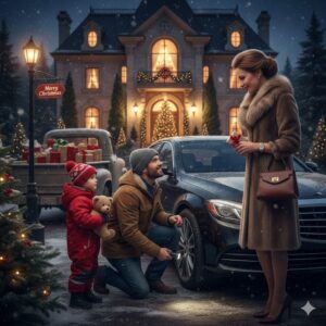 Un padre soltero ayuda a una mujer con el auto descompuesto en Nochebuena… sin imaginar que ella era millonaria. Era Nochebuena, una carretera…