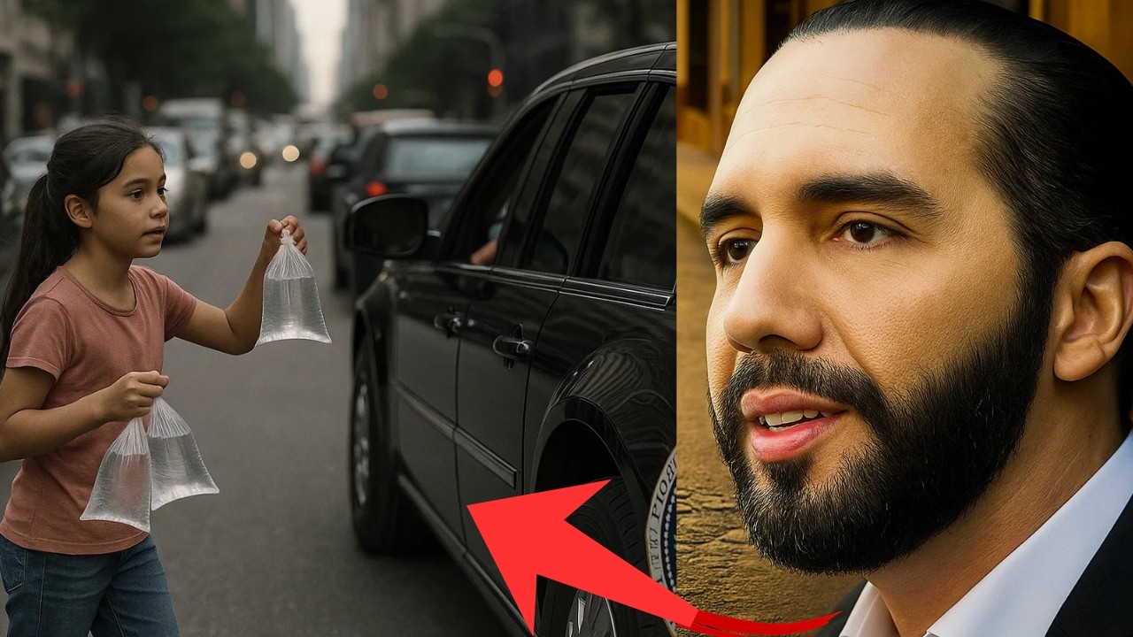 El semáforo cambió a rojo, deteniendo la comitiva. Fue entonces cuando Bukele levantó la vista y la vio. María. No era más que una silueta ágil moviéndose peligrosamente entre los coches, cargando una bandeja con bolsas de agua que parecía pesar más que ella misma. Su uniforme escolar, limpio pero desgastado por el tiempo y el uso, contaba una historia de dignidad en medio de la precariedad. A esa hora, cualquier niño de su edad debería estar haciendo los deberes o descansando, no esquivando retrovisores para ganar unas monedas.