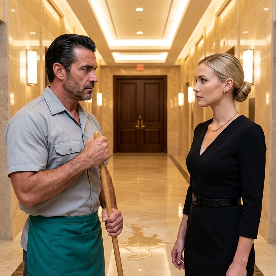 Diego se apoyó respetuosamente en el mango del trapeador. Su postura no era la de alguien sumiso, sino la de alguien que sabe escuchar.