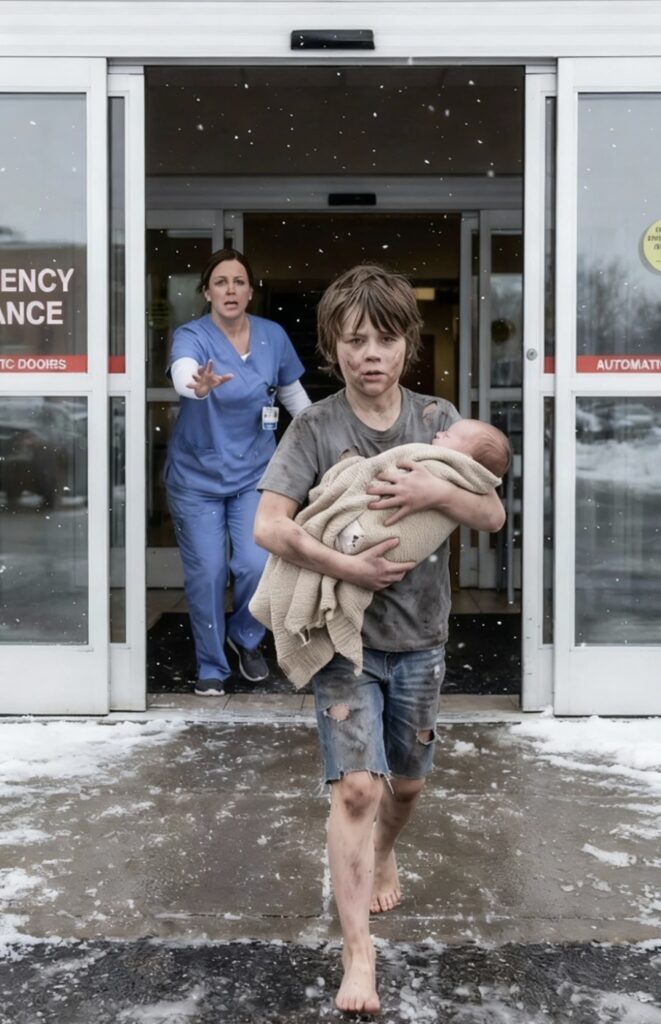 Un niño descalzo entró tambaleándose. No tendría más de ocho años. Sus pies estaban cubiertos de polvo y sangre seca. Vestía una camiseta demasiado grande para su cuerpo, rota en el hombro. Pero lo que congeló a todos fue lo que llevaba en brazos.