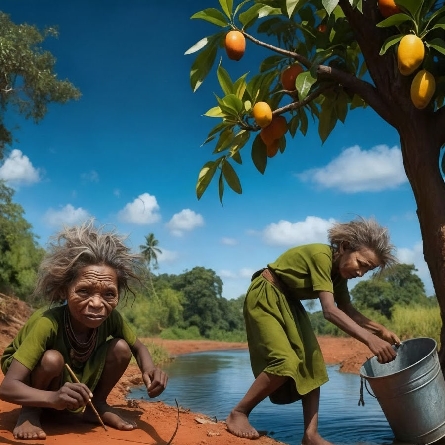 dibujando figuras en el suelo con ramas o intentando pescar con un balde, subía