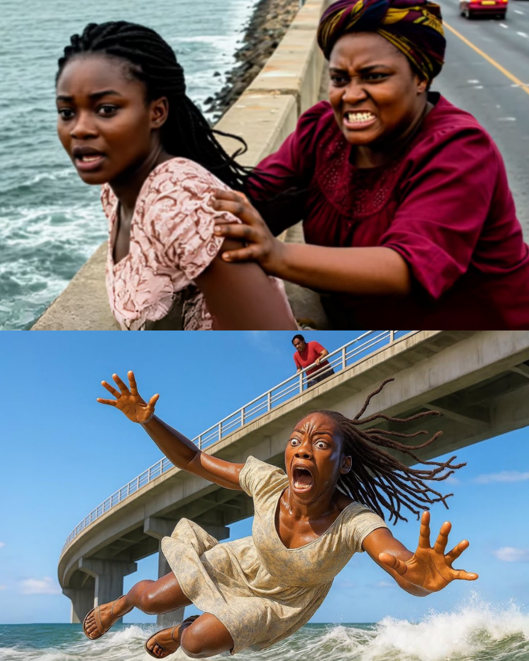 Aquel fatídico martes, Obia sugirió visitar a la tía de Adana. La mañana tenía algo extraño: los gestos de Obia eran demasiado calculados, sus sonrisas demasiado amplias. Aun así, Adana aceptó, confiando en la mujer que había sido su familia durante tanto tiempo. La conversación en el coche fue ligera, sobre el futuro de Adana y sus planes para la empresa. Pero al cruzar el Puente Lagoon, Obia detuvo el vehículo, alegando que hacía ruidos extraños. Bajaron, el viento del océano azotándoles el rostro.