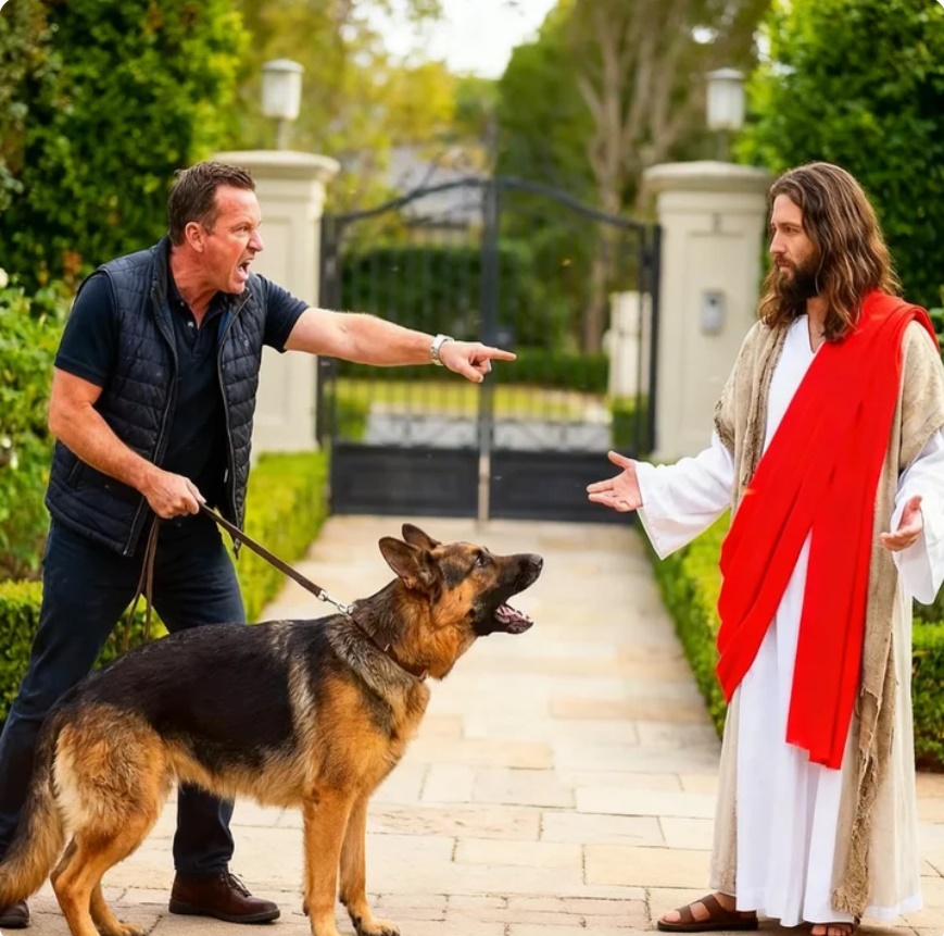 este, a este lo saco ahora mismo. El pastor alemán gruñe más fuerte, babea y