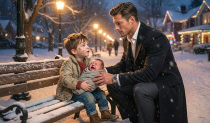 Entonces lo vi. Victoria Sinclair. Apenas treinta años, cabello largo, vestido rojo que dejaba la espalda al descubierto. Su mirada hacia él no era casual; era adoración pura. Mi estómago se revolvió. En ese momento, comprendí que no era un simple evento profesional para ella. Richard se inclinó ligeramente hacia su toque, como una flor girándose hacia el sol.