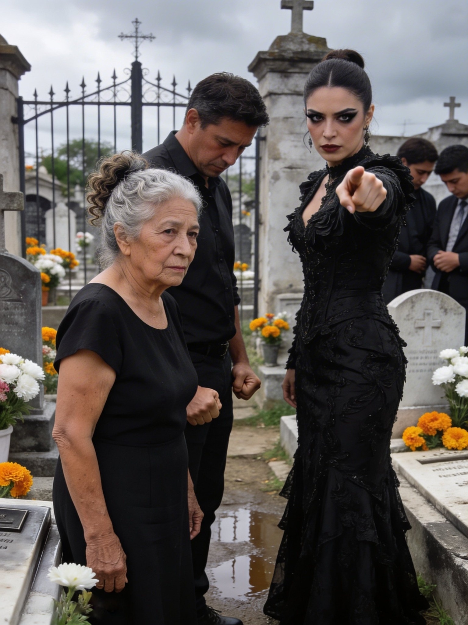 Estaba impecable, enfundada en un vestido de diseñador que parecía más apropiado para una gala que para un entierro, controlando cada detalle de la ceremonia como si fuera una directora de orquesta.