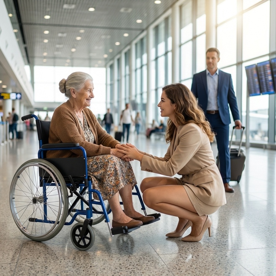 Gabriela logró localizar a la cuidadora, que se había perdido en la terminal equivocada, y se aseguró de que el personal de la aerolínea asistiera a Mercedes para el abordaje prioritario.