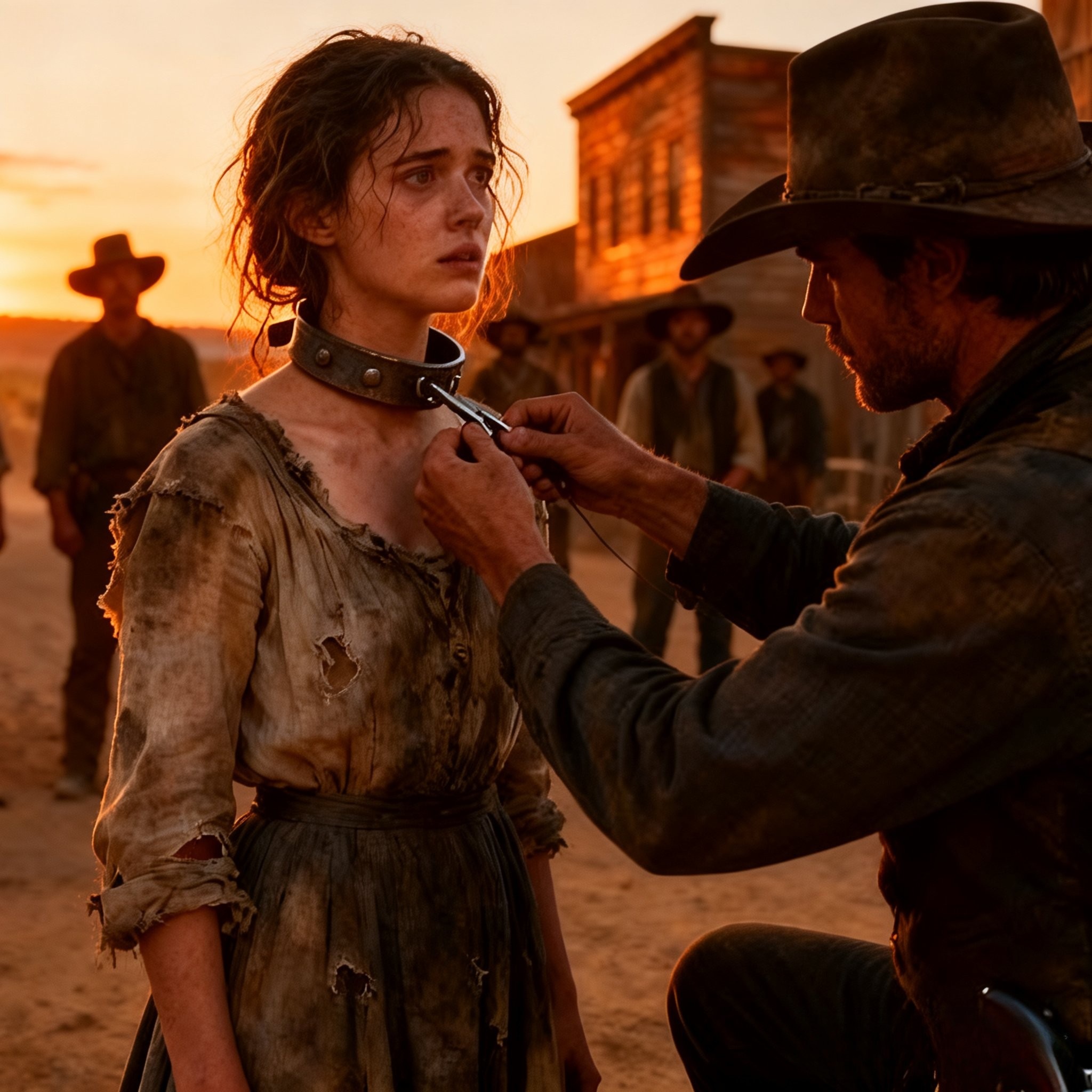 Fue rechazada en la subasta hasta que un extraño dijo: “La llevaré a casa”. El subastador se aclaró la garganta tres veces antes de volver a hablar.  Nadie le respondió.  El silencio se extendió por la plaza del pueblo como un moretón, lento, feo e intencional.  Los hombres permanecían con las botas hundidas en el polvo, los brazos cruzados, masticando tabaco y juzgando.