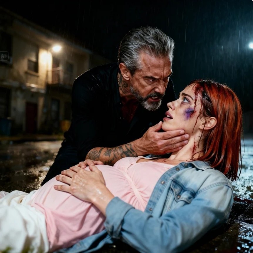 Rain hammered against the cracked windshield as Maya pressed one trembling hand to her swollen belly, the other