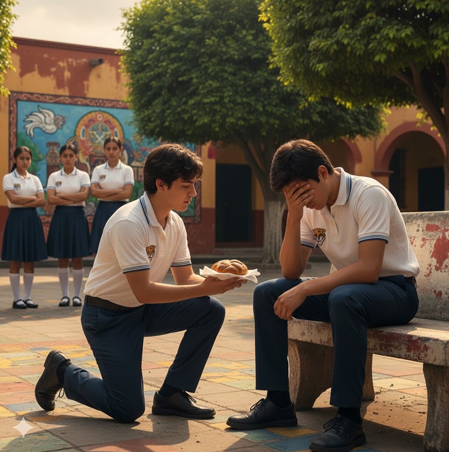 Tomás era el alumno becado. El que siempre se sentaba hasta atrás del salón. El que usaba un uniforme heredado de algún primo lejano. Caminaba con los hombros encorvados y los ojos pegados al suelo, como si pidiera perdón por existir. Siempre llevaba su almuerzo en una bolsa de papel café, arrugada, con manchas de grasa que delataban comidas simples y repetidas.