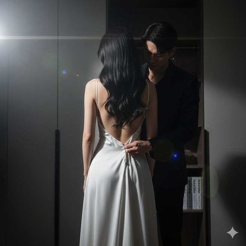 Ella parecía querer decir algo más, pero él la estrechó por la cintura y la llevó hacia dentro. Sus siluetas se alargaron bajo la luz de la calle antes de desaparecer.