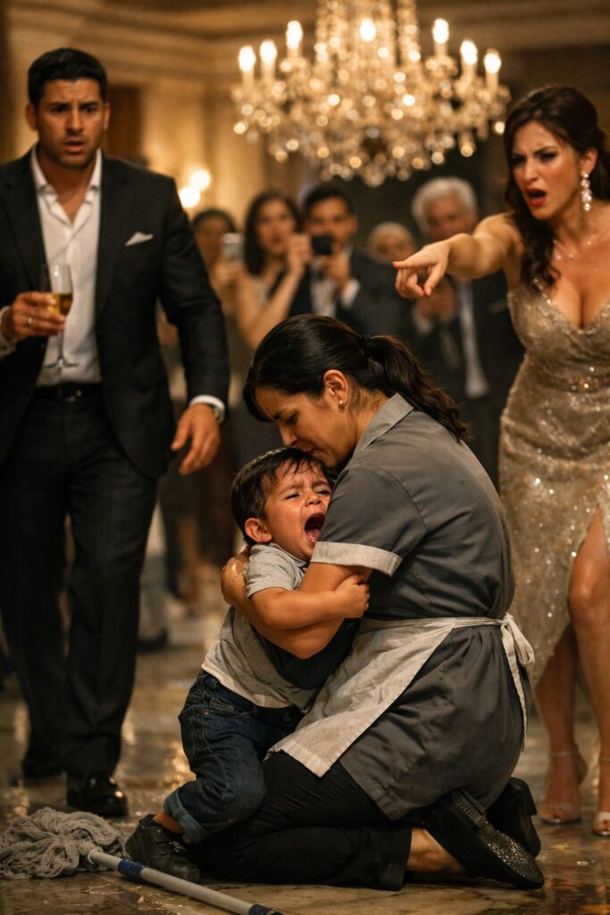 Cincuenta invitados de la alta sociedad voltearon al mismo tiempo hacia la misma escena: Mateo, el hijo de dos años del dueño de una de las cadenas hoteleras de lujo más poderosas de México, corría sobre el piso de mármol con las mejillas empapadas en lágrimas… directo hacia los brazos de la mujer de la limpieza.