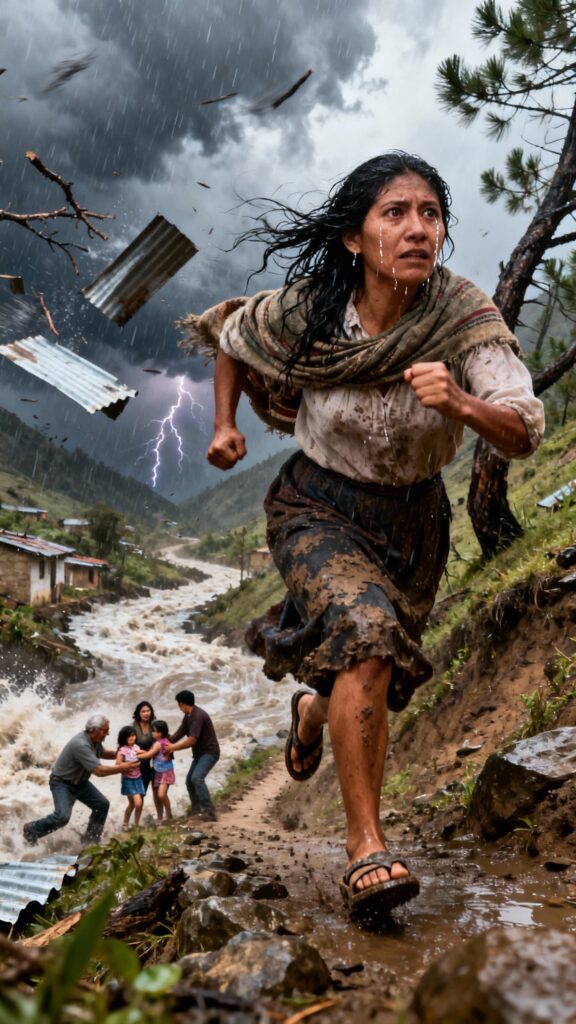 El camino de subida fue peor. Ahora no era solo luchar por sí misma; era cargar el miedo de otros, sostener cuerpos cansados, empujar cuando las piernas ya no daban. Don Guadalupe resbalaba y Juan y ella lo cargaban a ratos. Carmen subía con un niño en cada brazo: Lupita de seis años y Pedrito de cuatro, empapados, temblando.