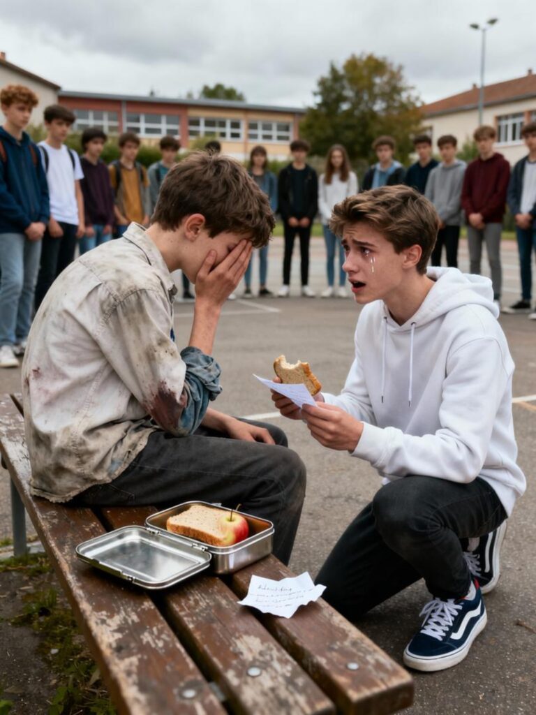 Le robaba el almuerzo al chico pobre para humillarlo… hasta que leí la nota de su madre y se me rompió el alma.