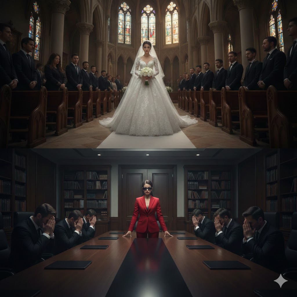ME DEJÓ MI PROMETIDO PLANTADA EN EL ALTAR POR ELEGIR A LA “HIJA” DE SU JEFE — PERO CUANDO ENTRÉ A LA SALA DE JUNTAS COMO LA NUEVA PRESIDENTA DEL CONSEJO, SE ARRODILLÓ FRENTE A MÍ AL DESCUBRIR QUE YO ERA LA HEREDERA QUE LLEVABAN AÑOS BUSCANDO.