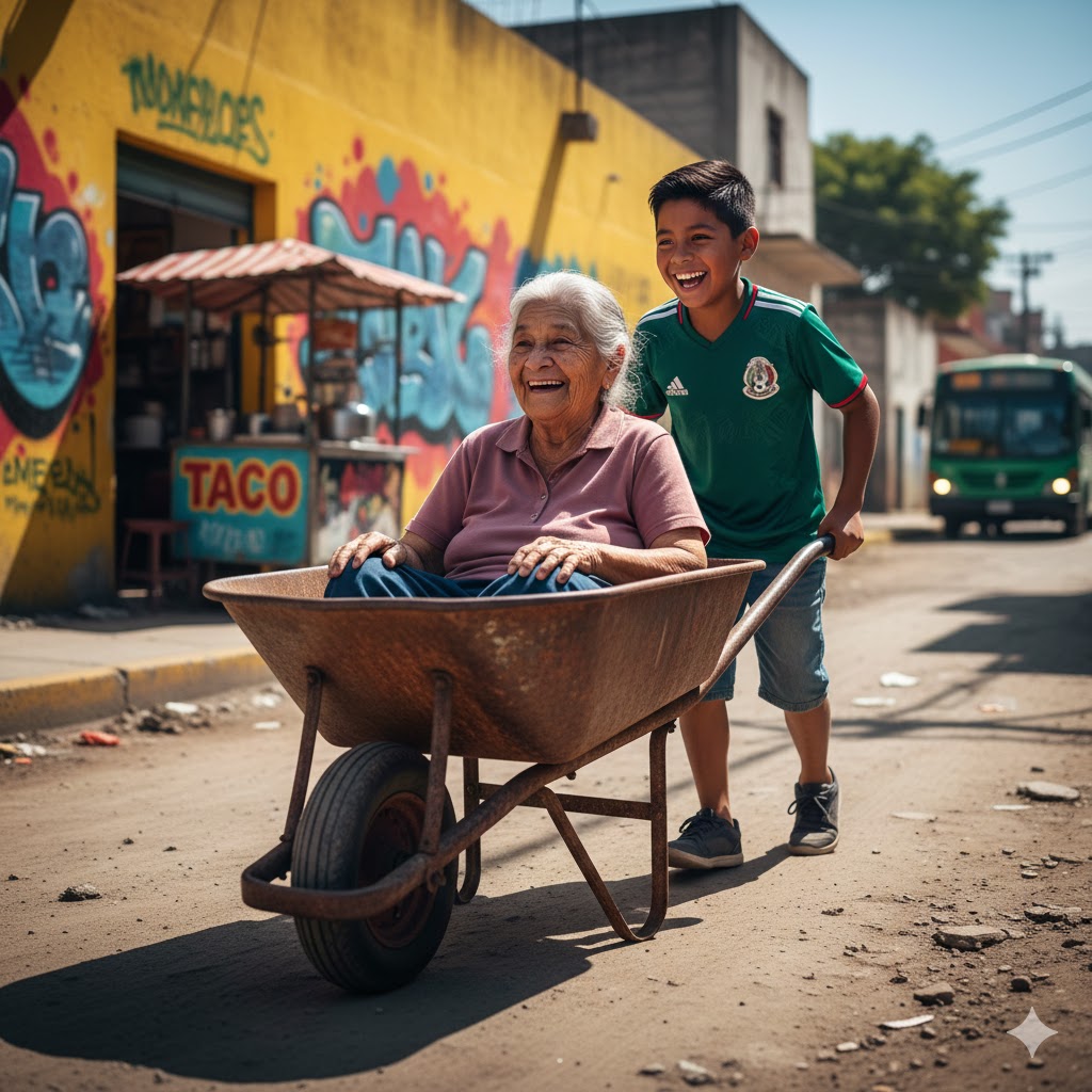 Empujar una carretilla de albañil no es ciencia nuclear, pero hacerlo durante kilómetros, cuesta arriba y con una pasajera VIP a bordo, es otro boleto. La ciudad empezó a cambiar a nuestro alrededor mientras avanzábamos. Dejamos atrás el ruido de los cláxones de los microbuseros, el olor a fritanga y las banquetas rotas donde la hierba crece entre las grietas.