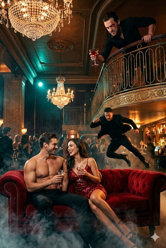 Yo estaba recostada sobre un sofá de terciopelo rojo, una mano sosteniendo un martini y la otra deslizándose por el torso firme de un cantante de moda. La música retumbaba, las luces giraban como un torbellino, y yo reía mostrando incluso mis colmillos.