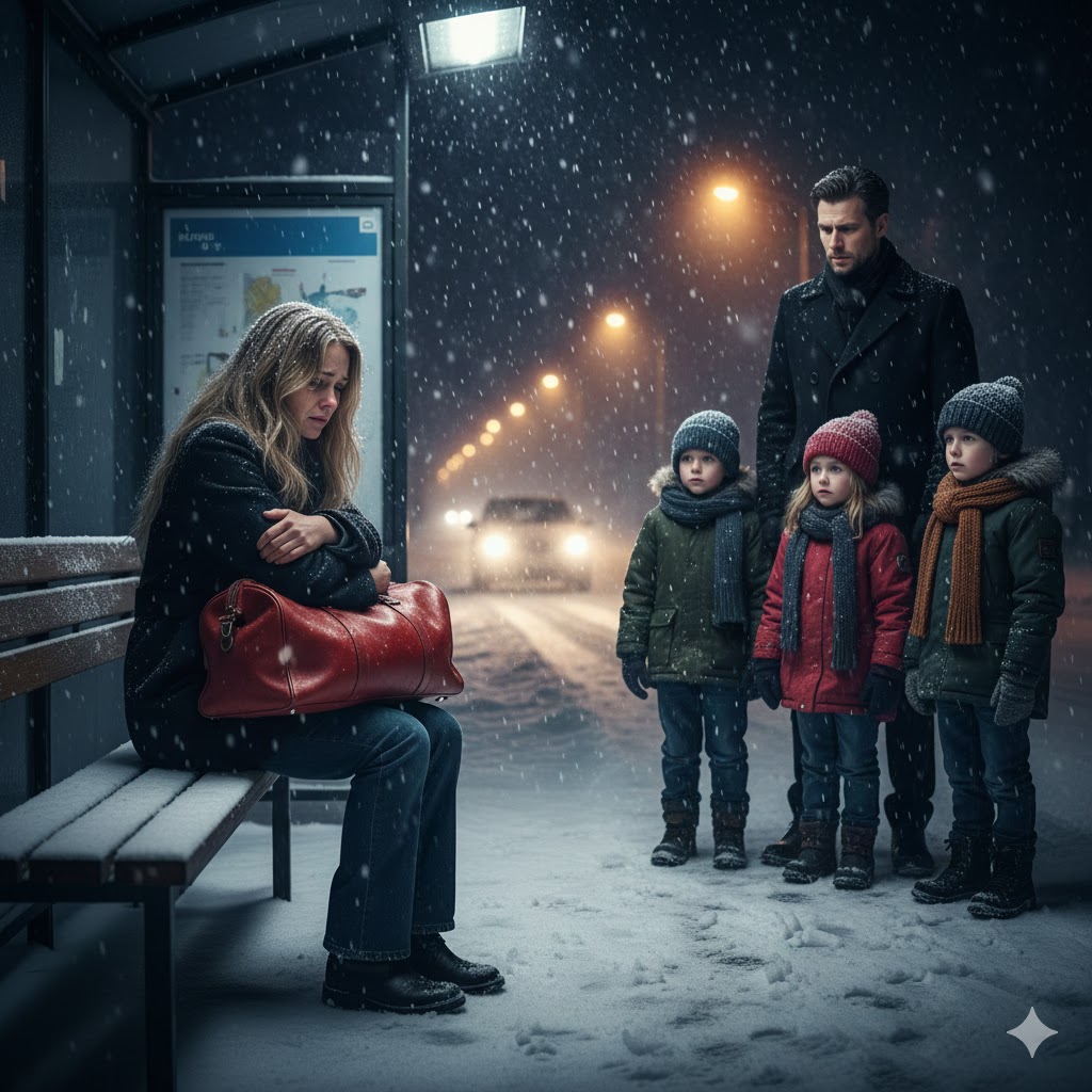 La nieve caía esa noche de diciembre con una insistencia casi cruel, cubriendo la ciudad de un manto blanco que ahogaba los sonidos y hacía que el mundo pareciera un lugar desolado y silencioso. En la parada del autobús, Clare Bennett, de 28 años, se abrazaba a sí misma contra el panel de plexiglás, tratando inútilmente de conservar el poco calor que le quedaba en el cuerpo. Su vestido, de un tono oliva delgado y elegante, había sido diseñado para cenas en interiores con calefacción, no para enfrentar una tormenta de nieve a la intemperie. A su lado, una bolsa de cuero marrón desgastada contenía todo lo que ahora poseía en el mundo: una muda de ropa, algunas fotografías arrugadas y los papeles del divorcio que habían sido arrojados a sus manos hacía apenas tres horas.