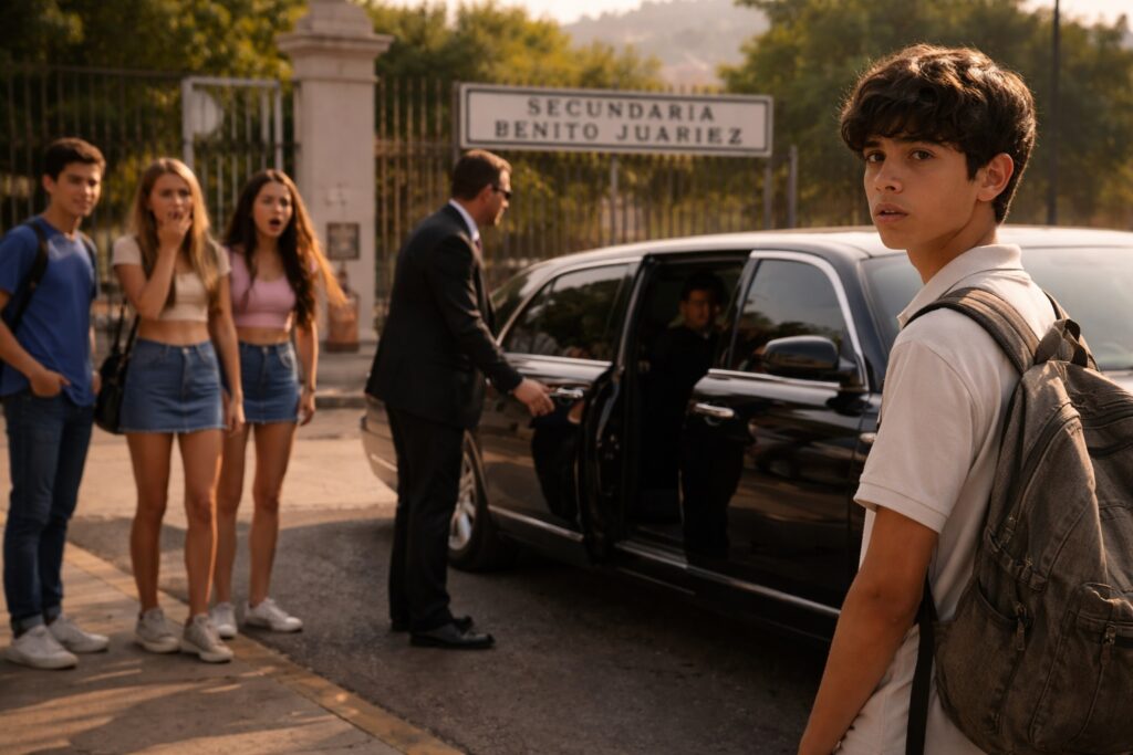Diego siempre era callado — no porque fuera orgulloso ni antipático, sino porque estaba acostumbrado a sentirse como una sombra entre sus compañeros. En la parte de atrás del salón, como siempre, estaban sentados Valeria, Sebastián y Camila. Chicos con zapatos de marca, hablando de viajes a Cancún o Guadalajara, y con suficiente seguridad para burlarse de cualquiera.