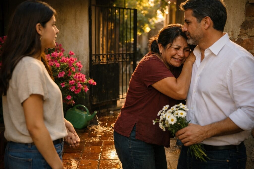 Pero antes de que pudiera terminar la frase, mi madre soltó la manguera y caminó hacia nosotros con pasos inseguros. Su rostro estaba pálido, los ojos brillantes, llenos de algo que no supe identificar al principio: no era solo sorpresa… era emoción contenida durante años.