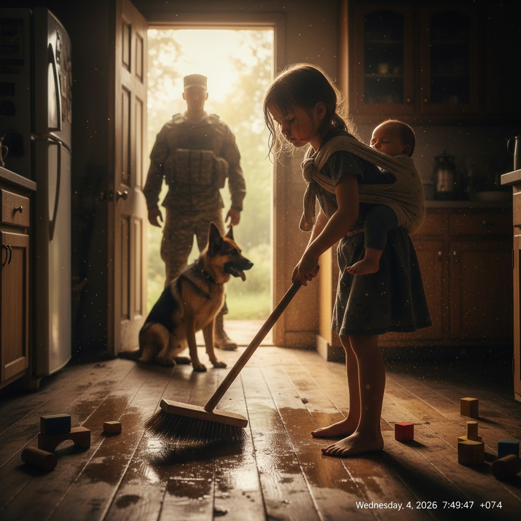 Volví del servicio convencida de que alguien me estaría esperando… pero en casa solo encontré a mi hija, demasiado pequeña para cuidar a su hermanito, y al perro apostado en la puerta como un guardián. Con los ojos vacíos, ella susurró: “Mamá se fue hace mucho”.