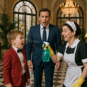 Las lámparas de araña brillaban como estrellas congeladas, el mármol relucía bajo los pasos de invitados en trajes y vestidos de gala, y…